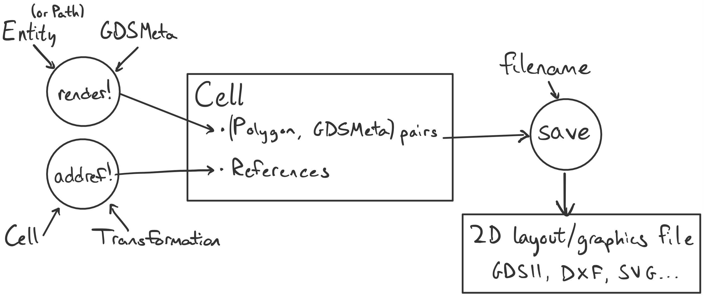 The simplest workflow for generating 2D layouts is to render entities directly to a Cell. (That's why we used it for the "quick start" example.)