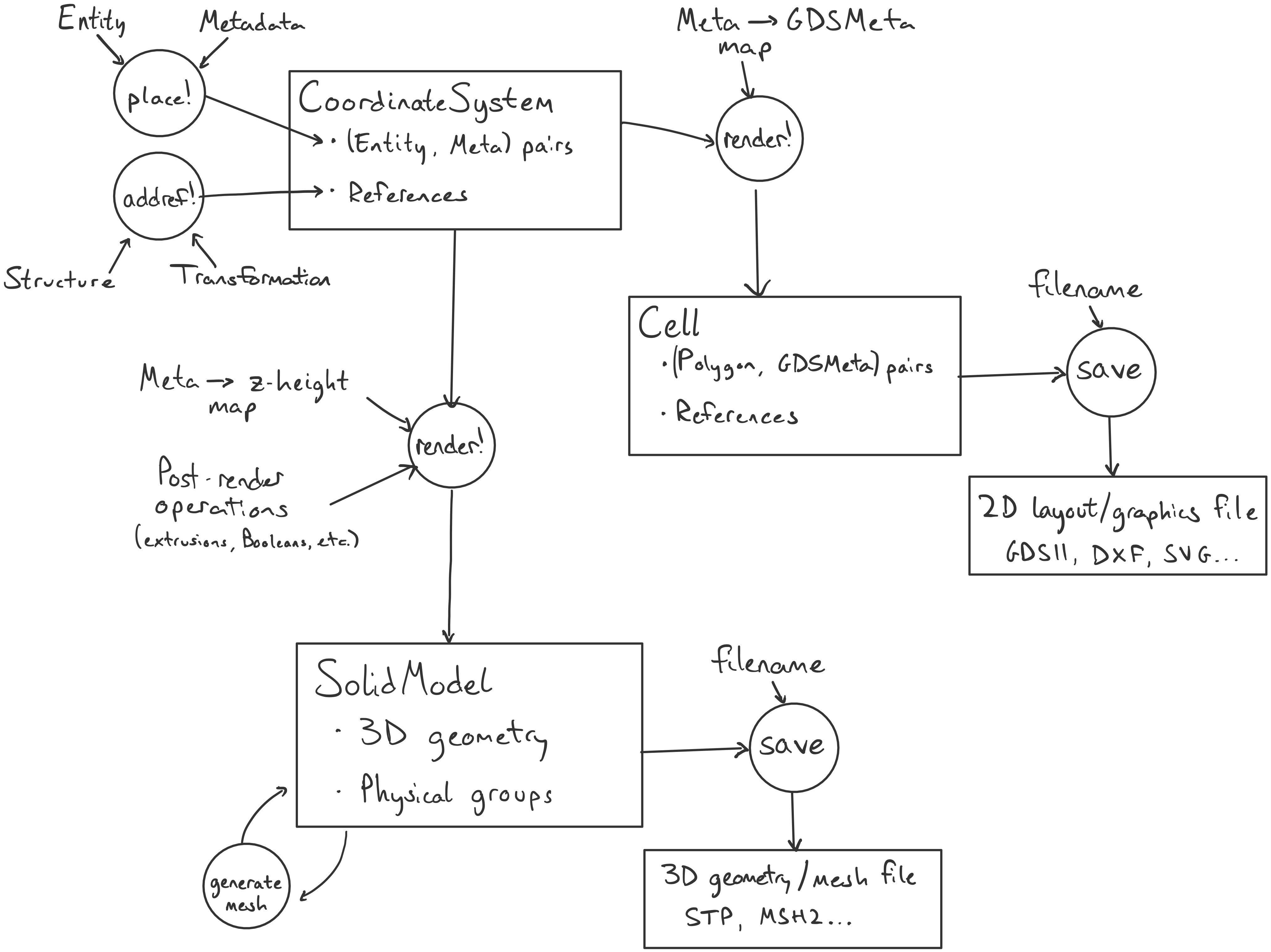 elements(csr)[1]DeviceLayout.StyledEntity{Unitful.Quantity{Float64, 𝐋, Unitful.ContextUnits{(nm,), 𝐋, Unitful.FreeUnits{(nm,), 𝐋, nothing}, nothing}}, ClippedPolygon{Unitful.Quantity{Float64, 𝐋, Unitful.ContextUnits{(nm,), 𝐋, Unitful.FreeUnits{(nm,), 𝐋, nothing}, nothing}}}, Rounded{Unitful.Quantity{Float64, 𝐋, Unitful.ContextUnits{(μm,), 𝐋, Unitful.FreeUnits{(nm,), 𝐋, nothing}, nothing}}}}(ClippedPolygon{Unitful.Quantity{Float64, 𝐋, Unitful.ContextUnits{(nm,), 𝐋, Unitful.FreeUnits{(nm,), 𝐋, nothing}, nothing}}}(Top-level PolyNode with 1 immediate children.), Rounded{Unitful.Quantity{Float64, 𝐋, Unitful.ContextUnits{(μm,), 𝐋, Unitful.FreeUnits{(nm,), 𝐋, nothing}, nothing}}}(4.0 μm, 0.0, 4.0 μm, 0.001, Point{Unitful.Quantity{Float64, 𝐋, Unitful.ContextUnits{(μm,), 𝐋, Unitful.FreeUnits{(nm,), 𝐋, nothing}, nothing}}}[], false))place! can only be used with CoordinateSystems. It does the same thing as render!, which still works, but the verb is less ambiguous. If you know you're only working with CoordinateSystems, it may be clearer to use place!, since render! suggests rendering to primitives—which can mean different things depending on the "backend".