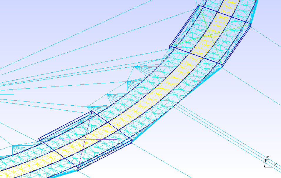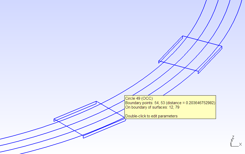 One notable thing about this solid model is that the arcs in the bent CPW are exact circular arcs. When we render to a Cell, all shapes get discretized into Polygons. But since we were working with our "native" CoordinateSystem, curved shapes like the CPW bend can be rendered as native curves in the solid geometry kernel. This not only keeps model size down but also allows Gmsh to make better meshes.