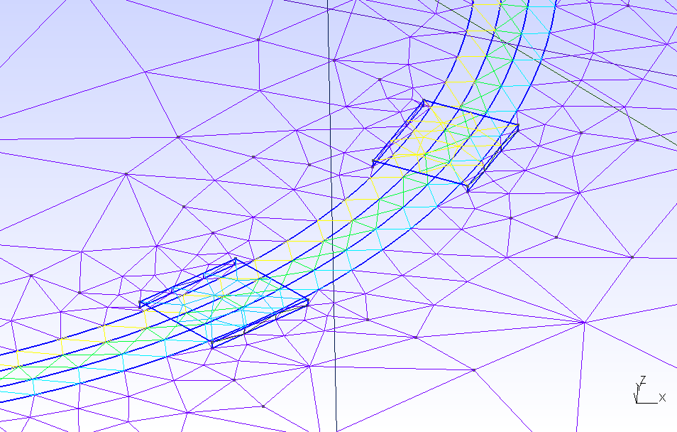 Moreover, when DeviceLayout.jl renders path segments and certain other entities, it automatically sets mesh sizing information to help Gmsh make better meshes. (You can also annotate entities with the MeshSized style to provide such information manually.)